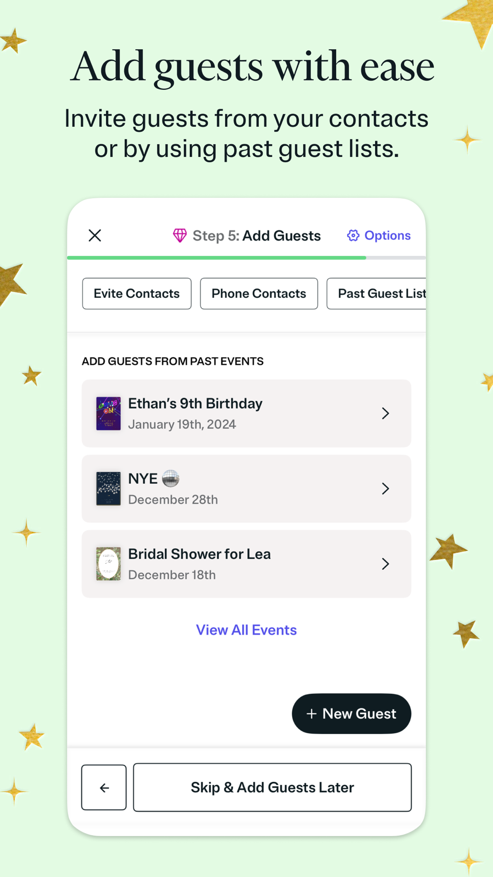 Come back to relive memories by visiting the event invitation at any time. Your past events are saved in your profile, so you can find them with ease.