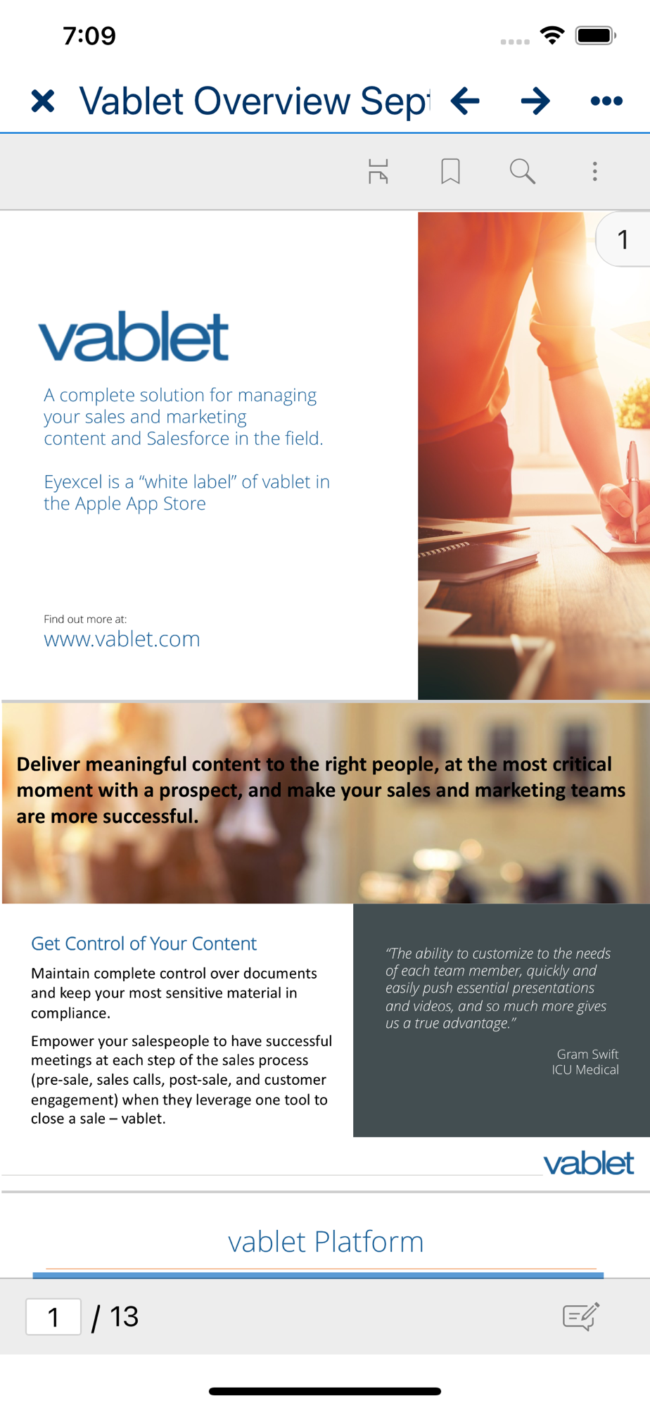 vablet accelerates sales and marketing by making it easy for sales reps to access to the right version of the content they need, from one place, when they need it, and wherever they are – on or offline.
