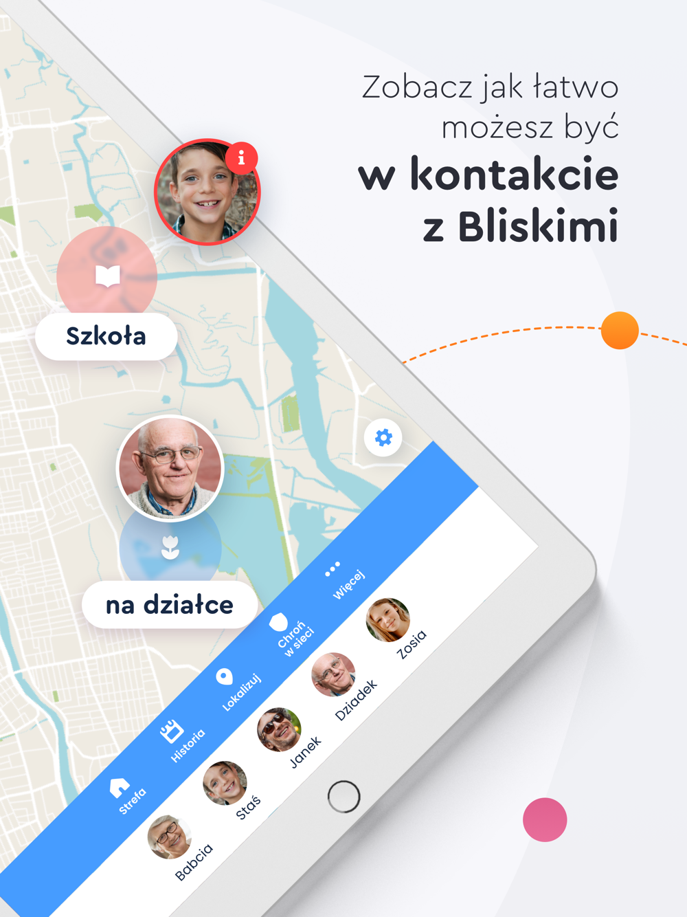 Bezpieczna Rodzina to aplikacja, która o dowolnej porze, przez 24/7 umożliwia lokalizowanie i dbanie o bezpieczeństwo Twoich Bliskich. To usługa, dzięki której nie musisz martwić się o tych, którzy są dla Ciebie najważniejsi. Dlaczego? Ponieważ na mapie w swoim telefonie widzisz dokładnie, gdzie znajdują się członkowie Twojej rodziny. Automatyczne powiadomienia SMS i e-mail to gwarancja, że zawsze dowiesz się, kiedy Twój Bliski opuści ustalone przez Ciebie miejsce, lub do niego wróci. Ale to nie wszystko.