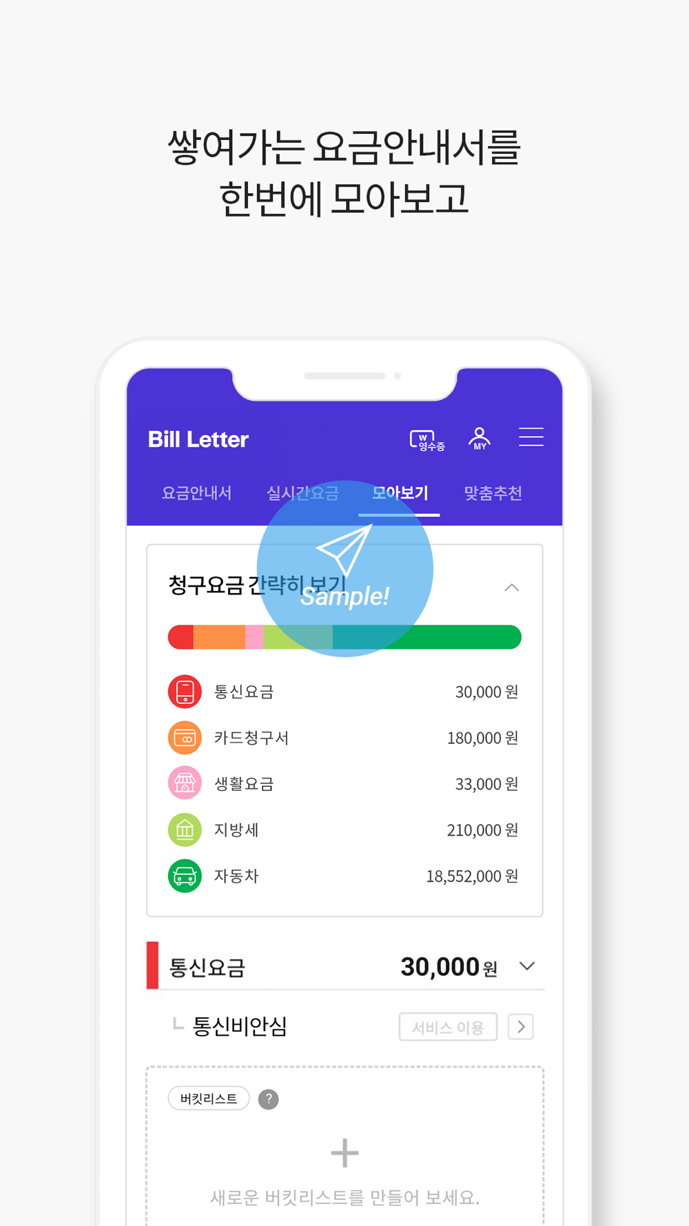 내 손안의 통신금융생활 'Bill Letter'를 통해 각종 청구서를 받아보세요.