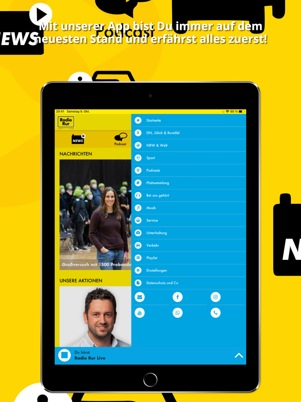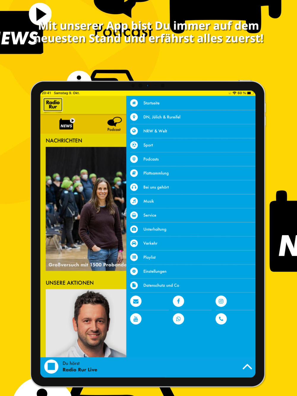Mit unserer App bleibt ihr immer auf dem neuesten Stand. Wir bringen alle Infos aus Düren, Jülich und der Rureifel auf euer Smartphone. Aktuelle Nachrichten, Infos zum Programm, Events und Aktionen. Hört das Programm über unseren Livestream oder wählt einen unserer Channel aus. Außerdem bekommt ihr die wichtigsten Infos direkt als Push-Mitteilung auf eurem iPhone oder auf der Apple Watch.