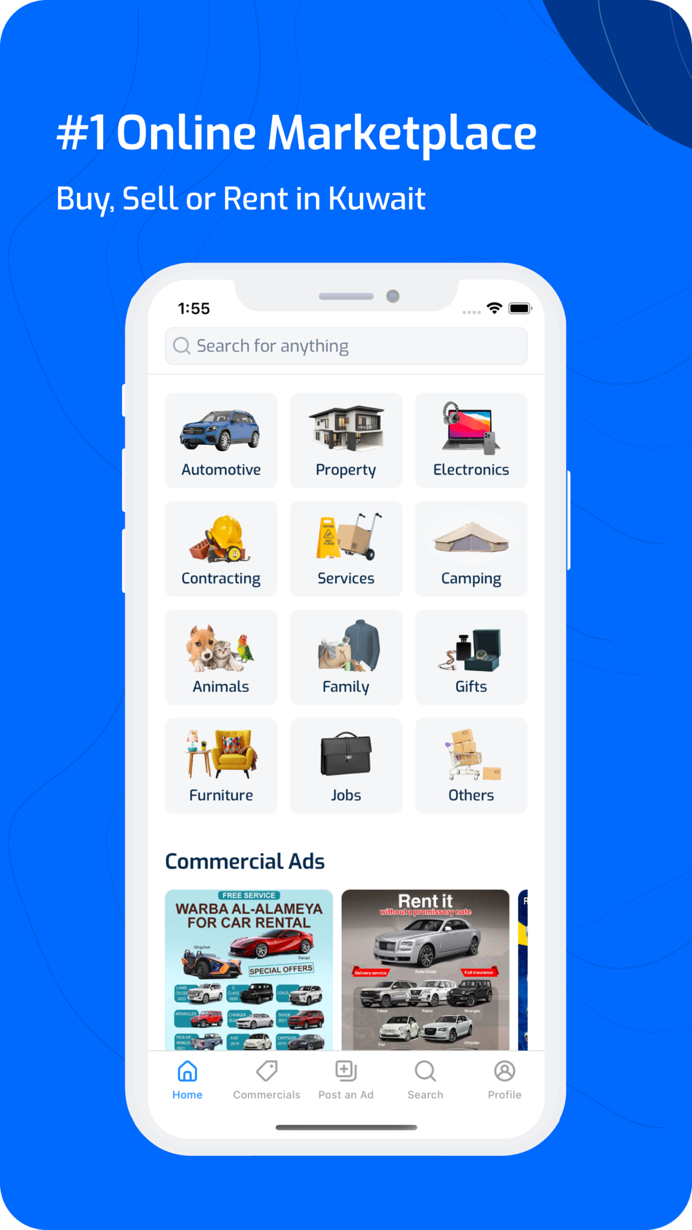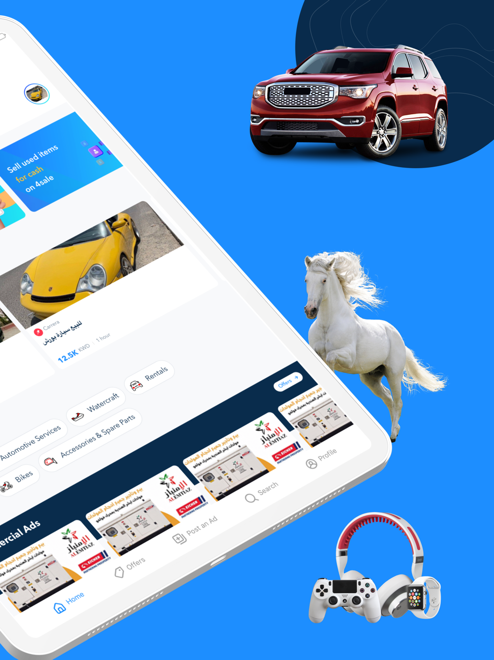 4Sale is Kuwait’s leading online marketplace for buying, selling, and renting with the most listings of products and services, from any category you can dream of! From buying your next car or finding the perfect apartment to upgrading your electronics, hiring someone to provide services like installing and maintaining your AC system, or painting your house, you can even find the right job for you on 4Sale!