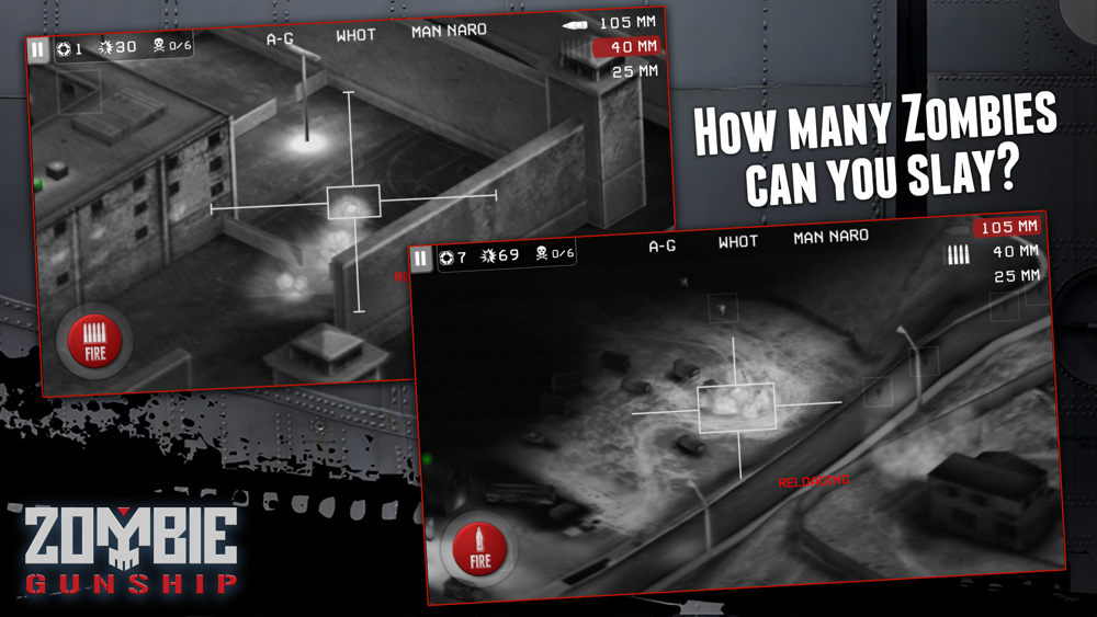 Zombie Gunship® puts you in the gunner seat of a heavily-armed AC-130 ground attack aircraft. Strategically fire your powerful guns to slay endless waves of zombies and protect the remaining survivors of the zombie apocalypse!