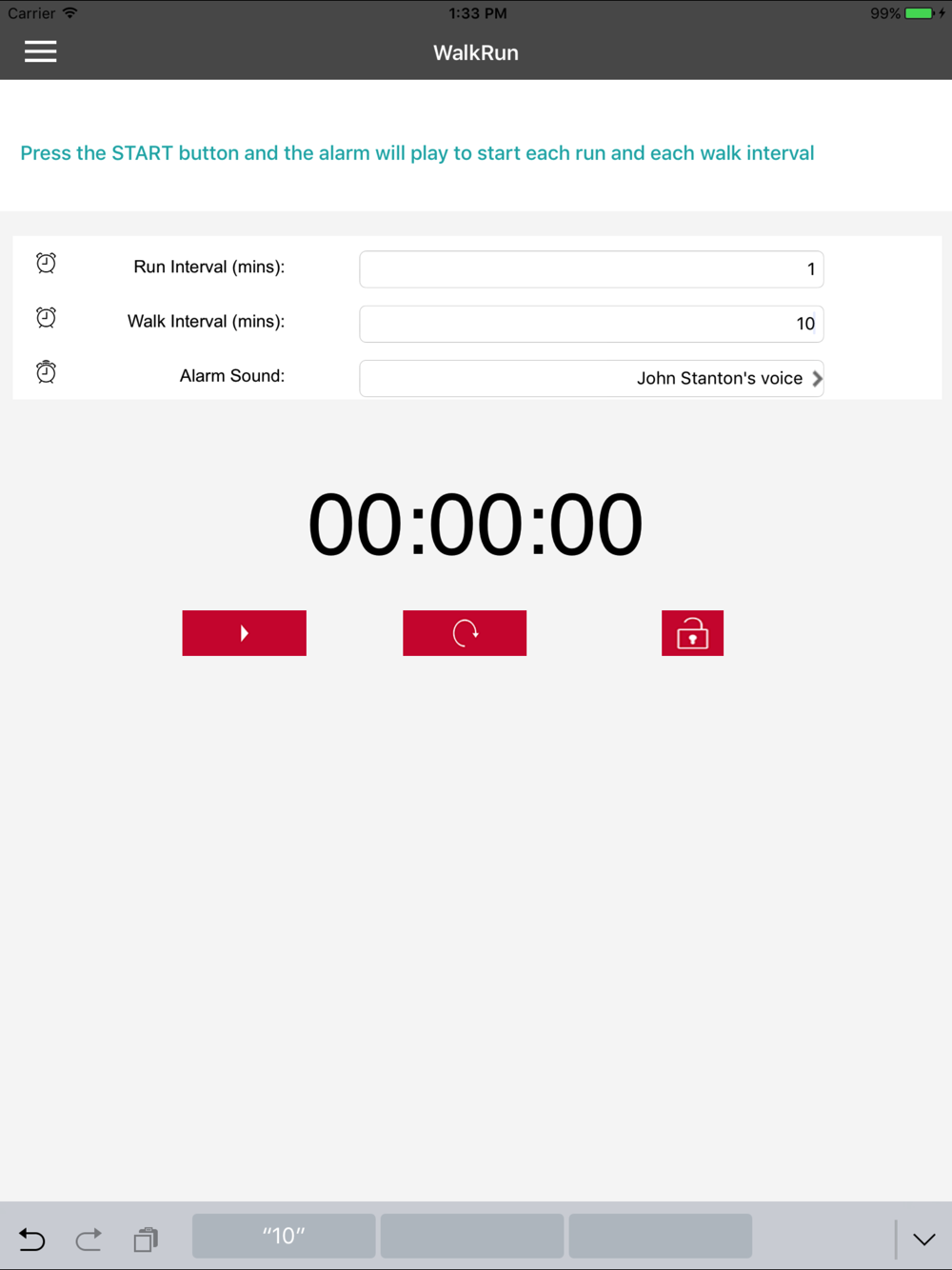 A repeating timer for your Run and Walk intervals. The interval durations can be customized and any song or audio file in your library can be selected for your alarm.