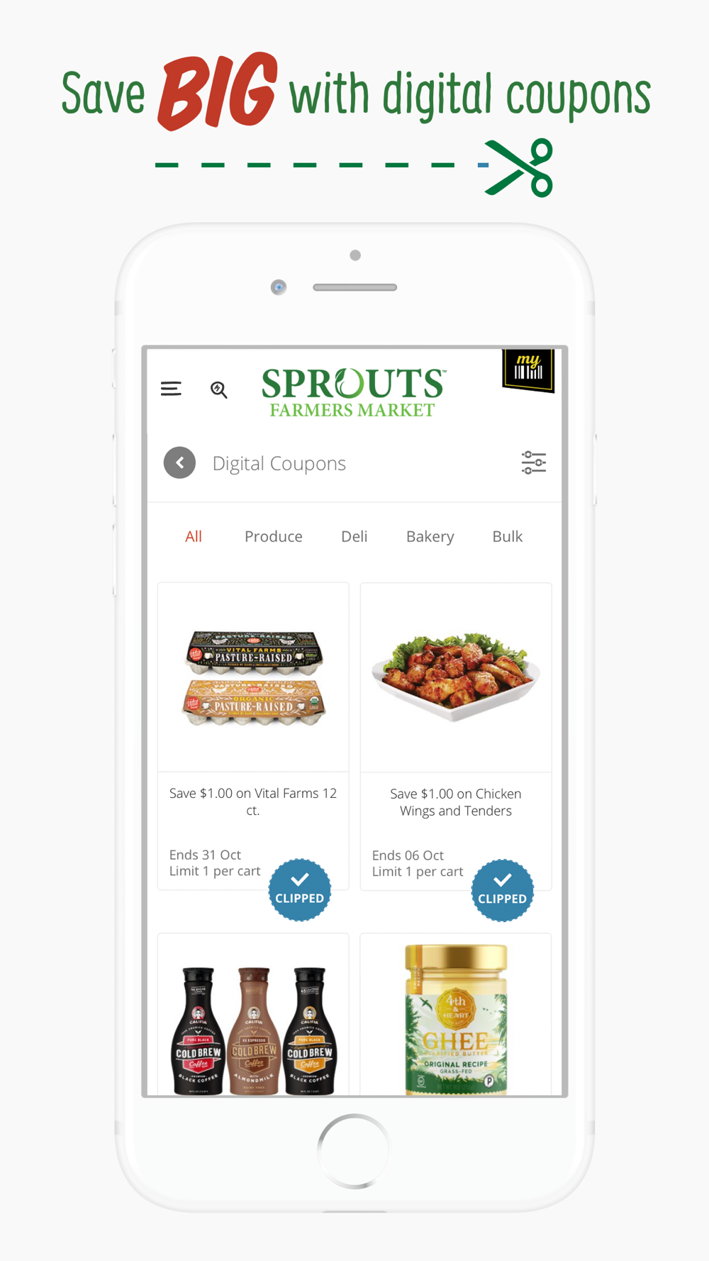 Good-for-you grocery shopping has never been easier, more affordable and fun with the Sprouts Farmers Market app! Browse your store’s amazing array of products and view the latest specials to build a personalized shopping list. Then, clip, scan and save even more with digital coupons and Checkout Challenges.