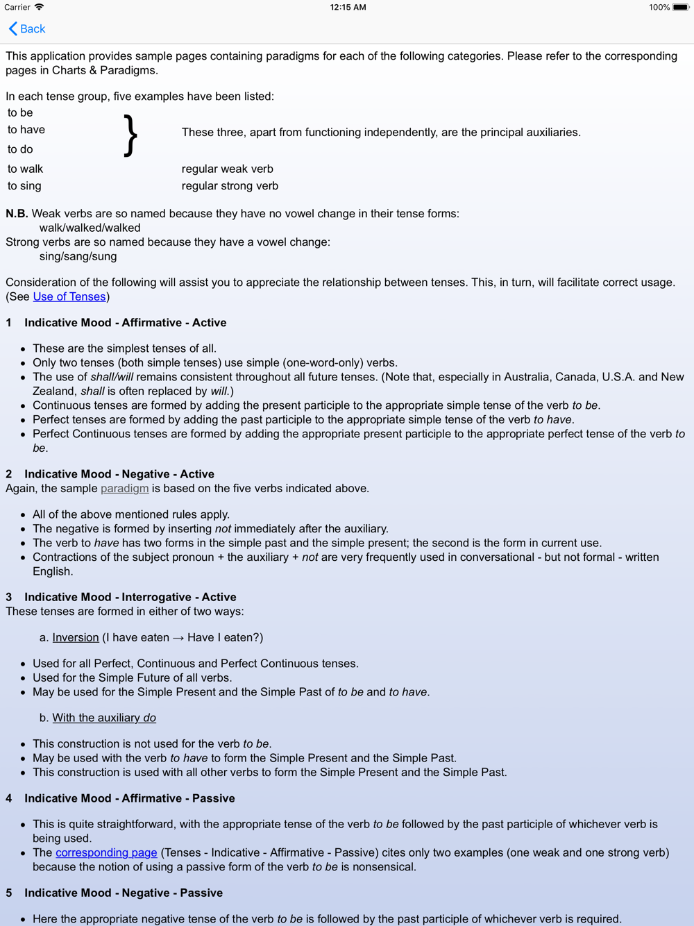 Comprehensive verb paradigms.