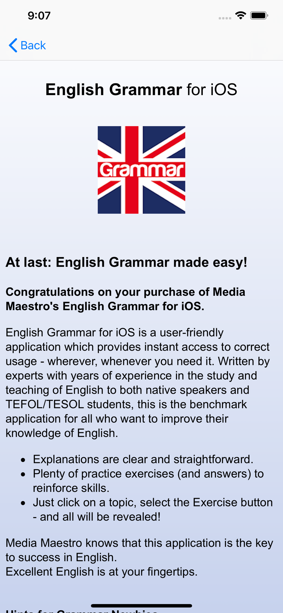 Forget the text-books; forget the classroom drills: the English Grammar app offers convenience at your fingertips.