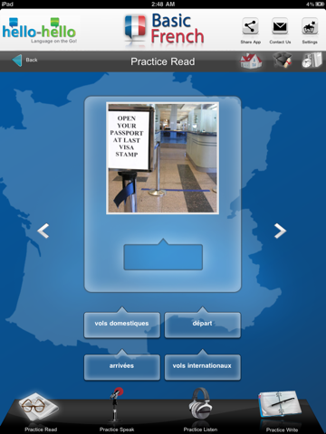 Super cool iPad app for learning French. Hello-Hello’s Basic French LITE app is a great way to build your vocabulary. The app has the following features:
