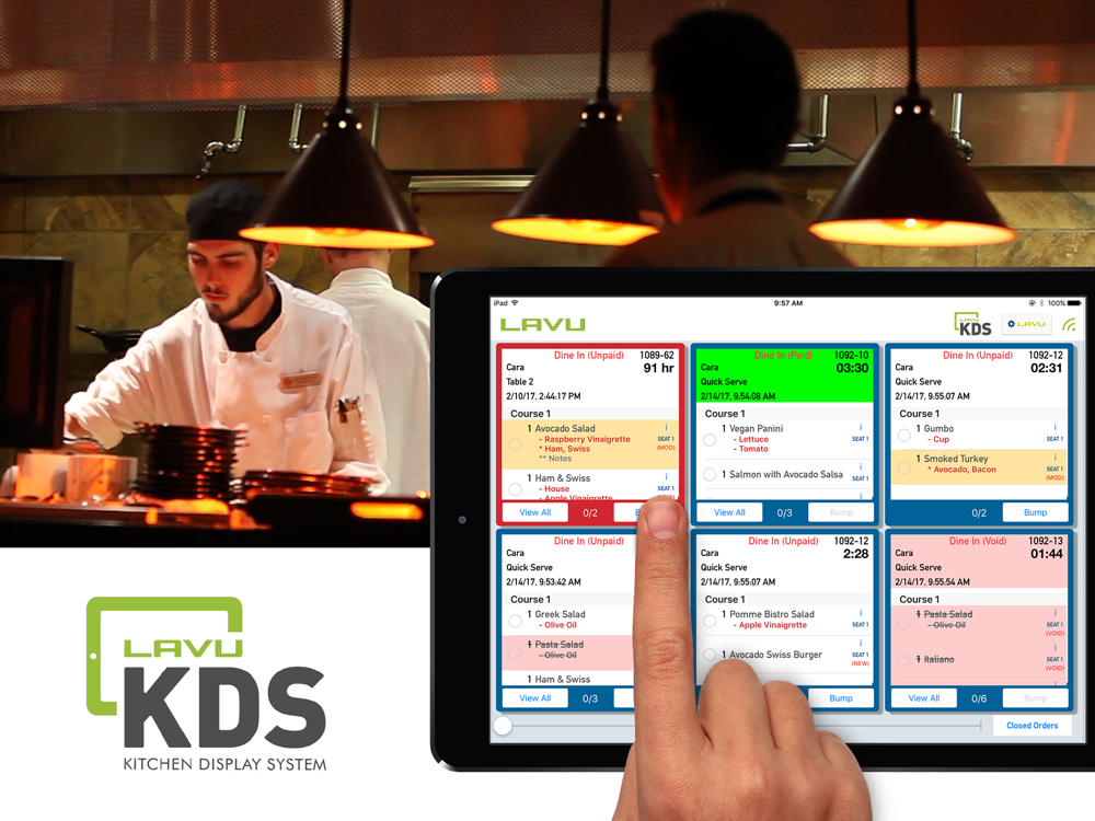 Our smart and sleek iPad-based Kitchen Display System provides a real-time ordering system that is directly integrated with your Lavu point-of-sale system. Use Lavu KDS 2.0 to increase productivity and accuracy—and decrease waste, without the need for paper tickets.