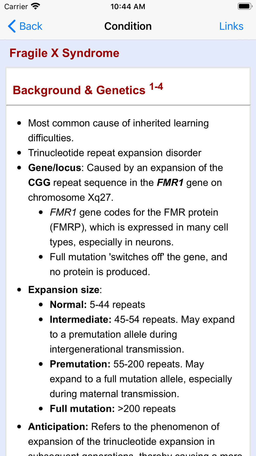 Genetics 4 Medics application should only be used for educational purposes and NOT as a diagnostic tool. For help with diagnosing a genetic condition, please take advice from an experienced Clinical Geneticist.