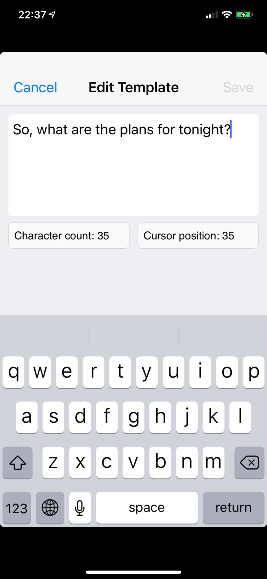 - Character count – know the length of your Templates as you create / amend them.