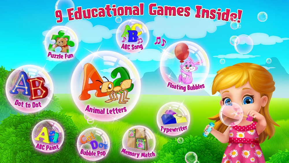 Fly up with the ABC bunny while learning your ABC. Enjoy the cheerful scenery as you fly higher and higher in the sky. Pop the letter bubbles in order from A to Z to move higher and higher.