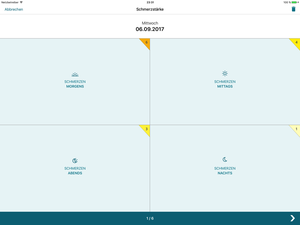 • Dokumentation Ihrer Schmerzstärke nach Tageszeit