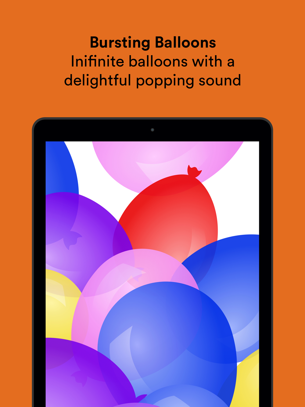 Balloons: Balloons float up the screen, and they pop when they are tapped. When your baby shakes your device, all the balloons will pop at once!