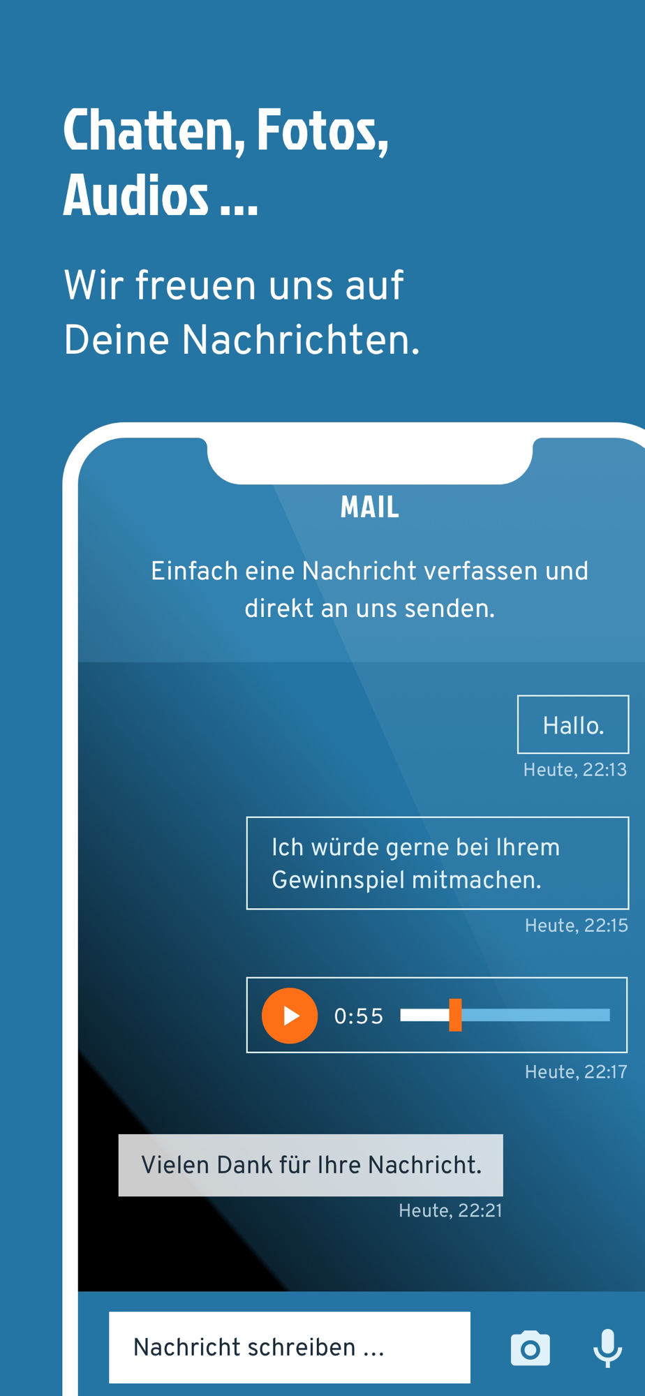 Du willst uns kurz was mitteilen? Schreib uns direkt über die Mail-Funktion in der App!