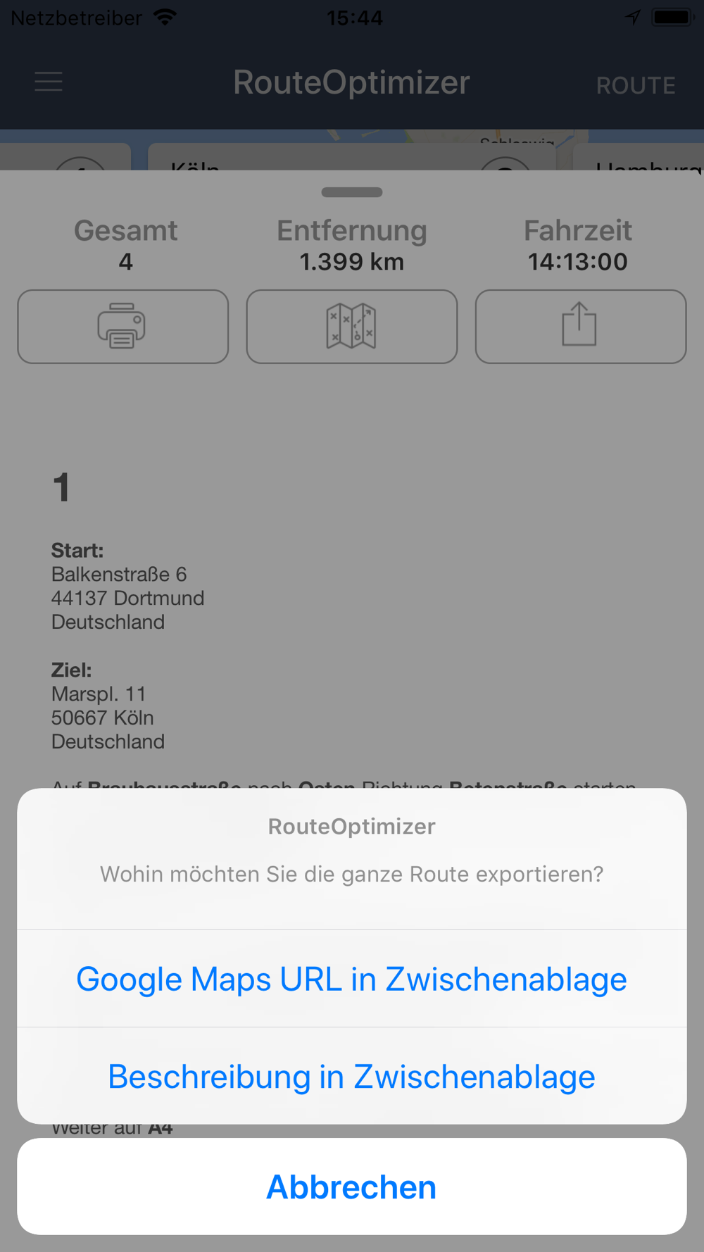 (Das berechnen der optimalen Route benötigt eine Datenverbindung).