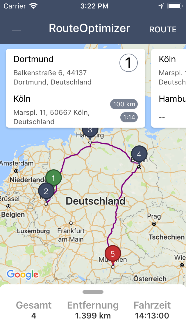 - RouteOptimizer Tourenplanung iPhone | iPad