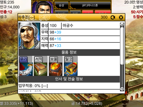 220여명의 장수 데이터, 30단계의 장수 승급, 백 여개의 아이템, 자유로운 외교 시스템과 함께 유저끼리 수 천 가지의 전략과 전술을 구사하며 두뇌싸움을 벌이는 풀 네트워크 전략 시뮬레이션 게임입니다.