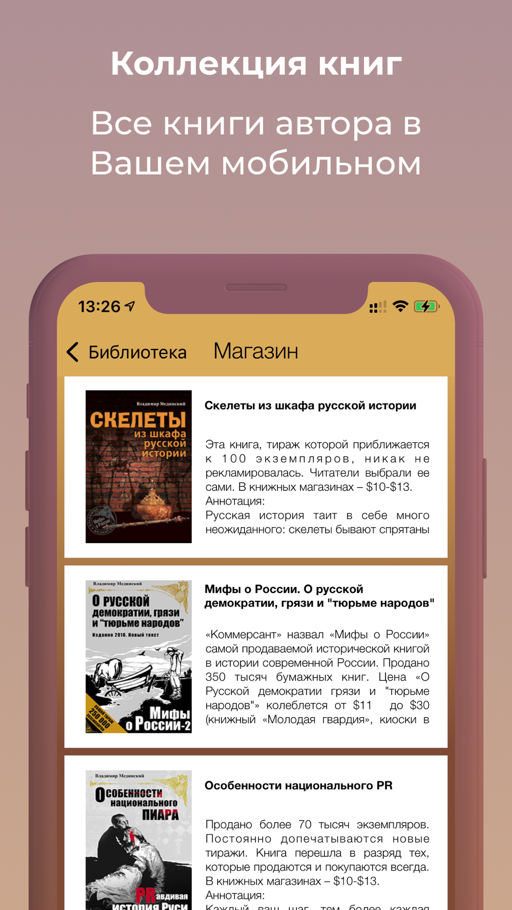 В этом приложении вы найдете книги Владимира Мединского, а также новостную ленту.