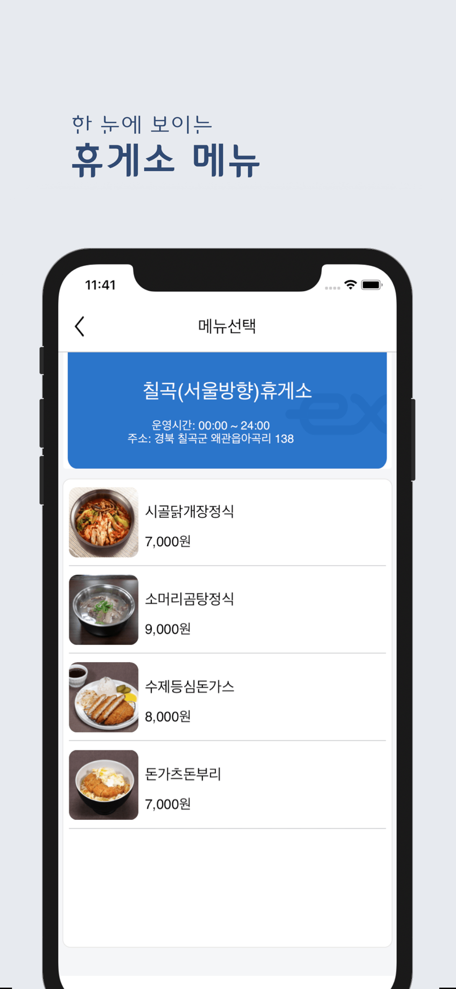 휴게소 대표메뉴, 편의시설, 이벤트 정보 및 주유소 가격정보등을 제공합니다.