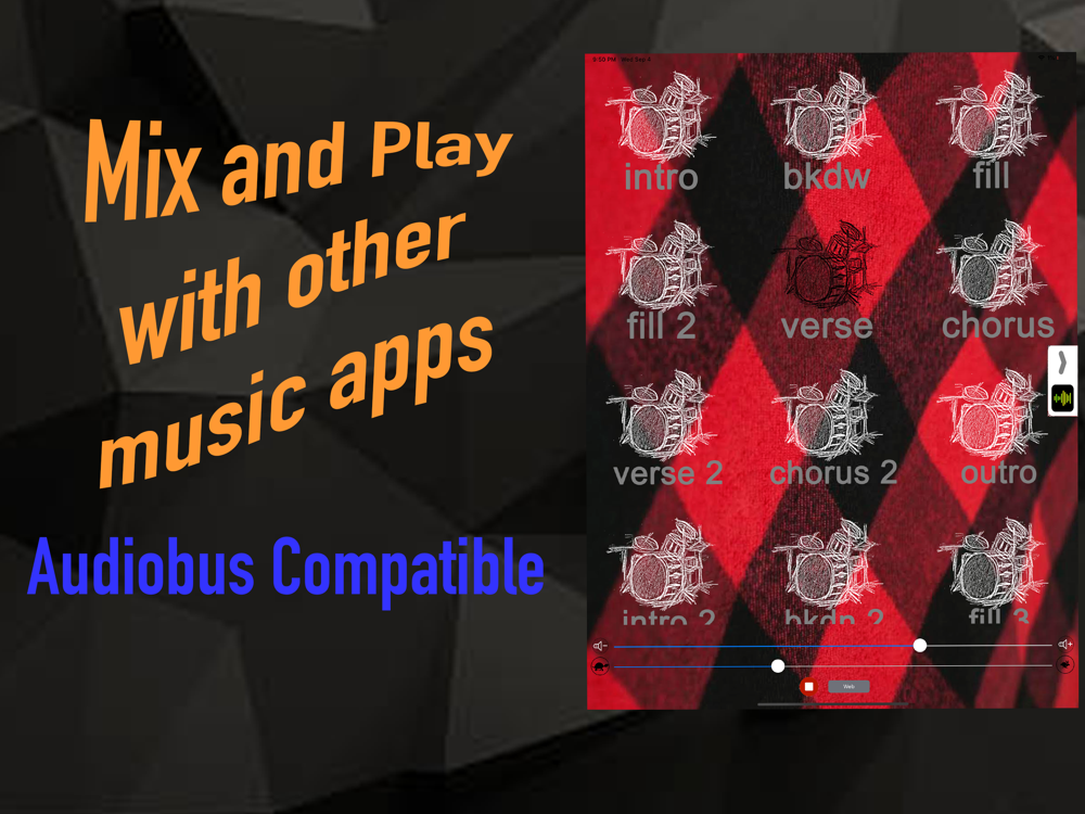 .Designed to be efficient and effective. It’s flat-out driving straight-ahead, hard-hitting drum. Created by an indie developer for all musicians. Slamming beats and furious fills with brutal breakdowns with a single tap switch from intro, verse, chorus, breakdown, fills and outro sections. Big buttons designed for live play-ability and simple design for the zero learning curve. Open with Audiobus play along with other apps and record. The difference between a beat machine and a drum machine is this app loops quality drums recorded by a professional drummer in a studio when drum machines just play single sounds and are computerized, complicated, and lack feel and musicality. For less than a dollar have a beat machine in your pocket with HQ drum loops with natural drum loops in a highly organized structure.