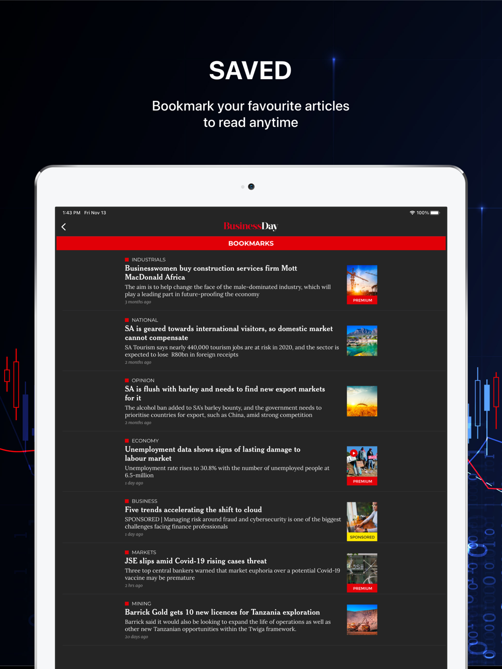 The Business Day app delivers all the latest business news in text and video format, along with influential opinions and in-depth analysis; popular columnists; market movements and indicators; lifestyle content; and more. Our newsroom produces expert reporting throughout the day, seven days a week, so you’ll never be without all the news worth knowing.