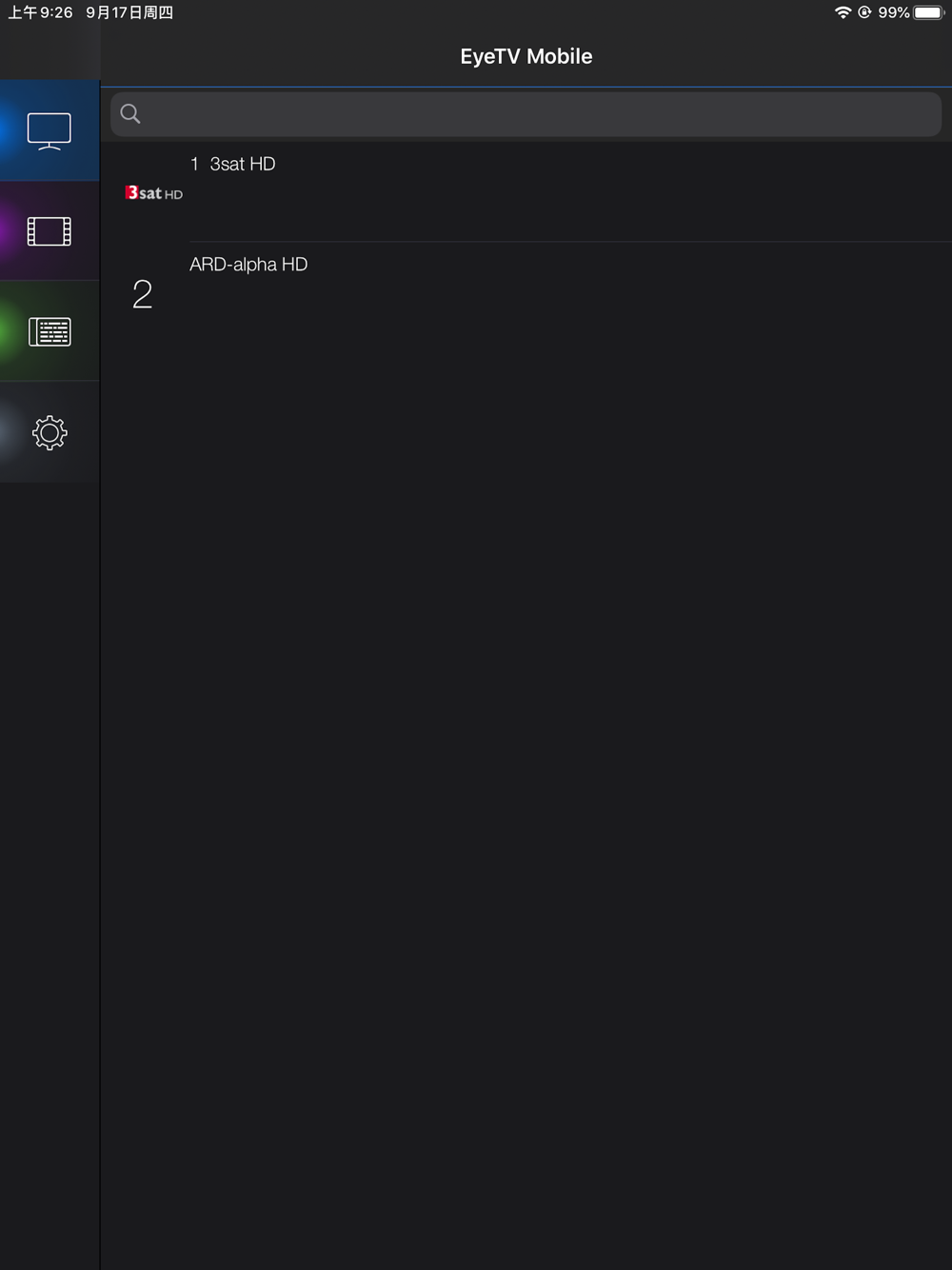 This app requires the Elgato EyeTV Mobile tuner. EyeTV Mobile connects directly to the iPad or iPhone and receives the TV signal via the supplied miniature telescopic antenna – no internet connection required!