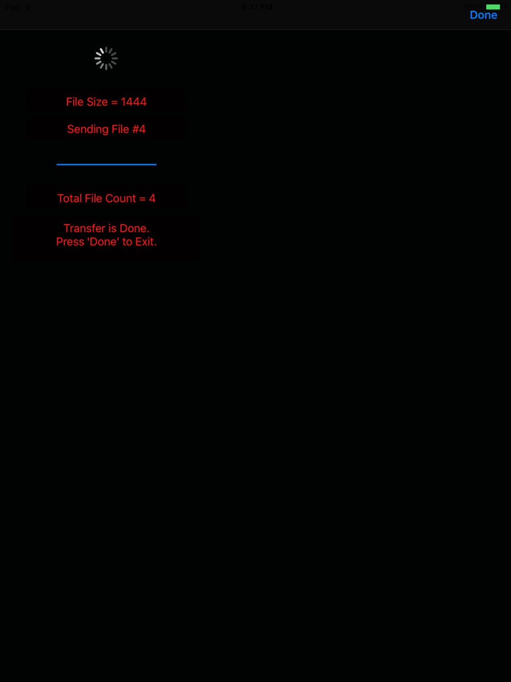 C- Press "Done" on iOS when transfer is complete , and "Stop