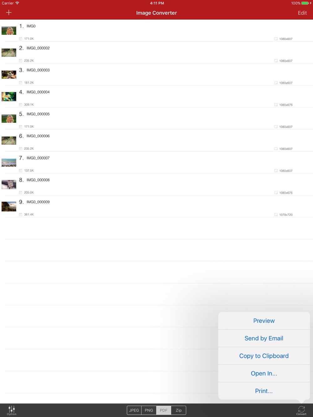 - Support Convert images to JPEG , PNG , PDF & Zip file.
