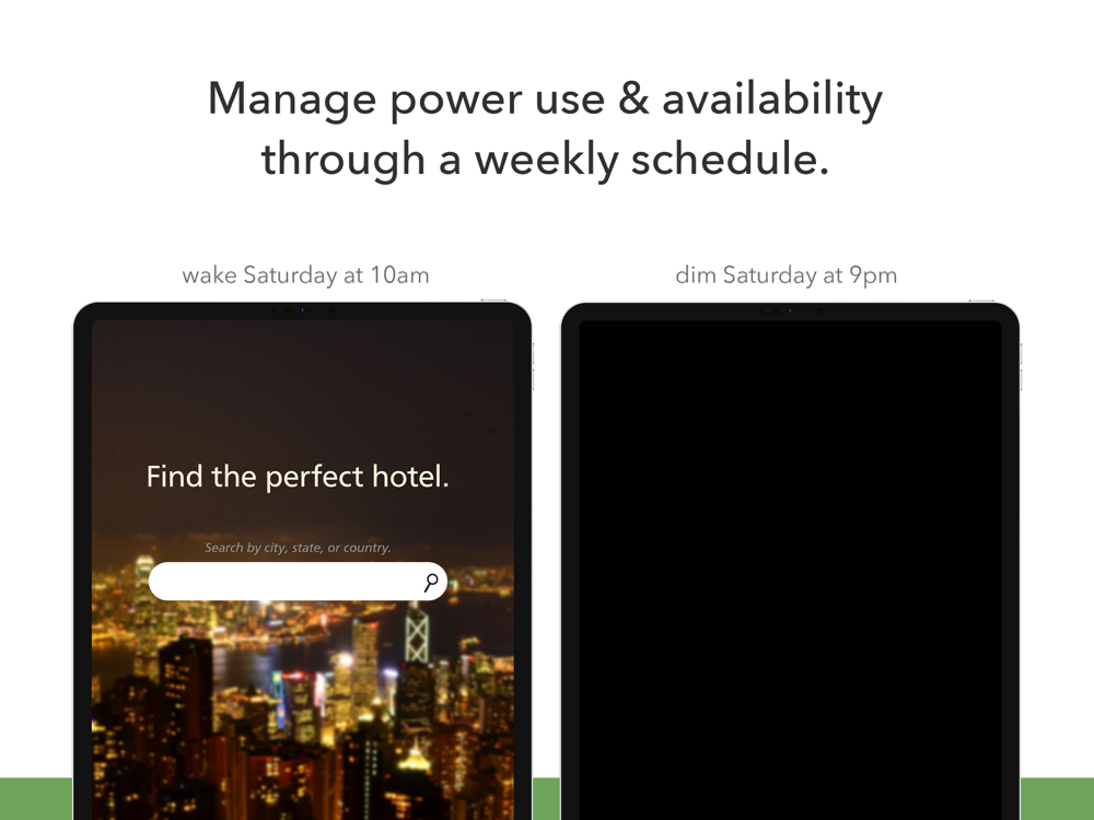 • Control the screen brightness from inside the app settings or dim to minimum brightness while idle.