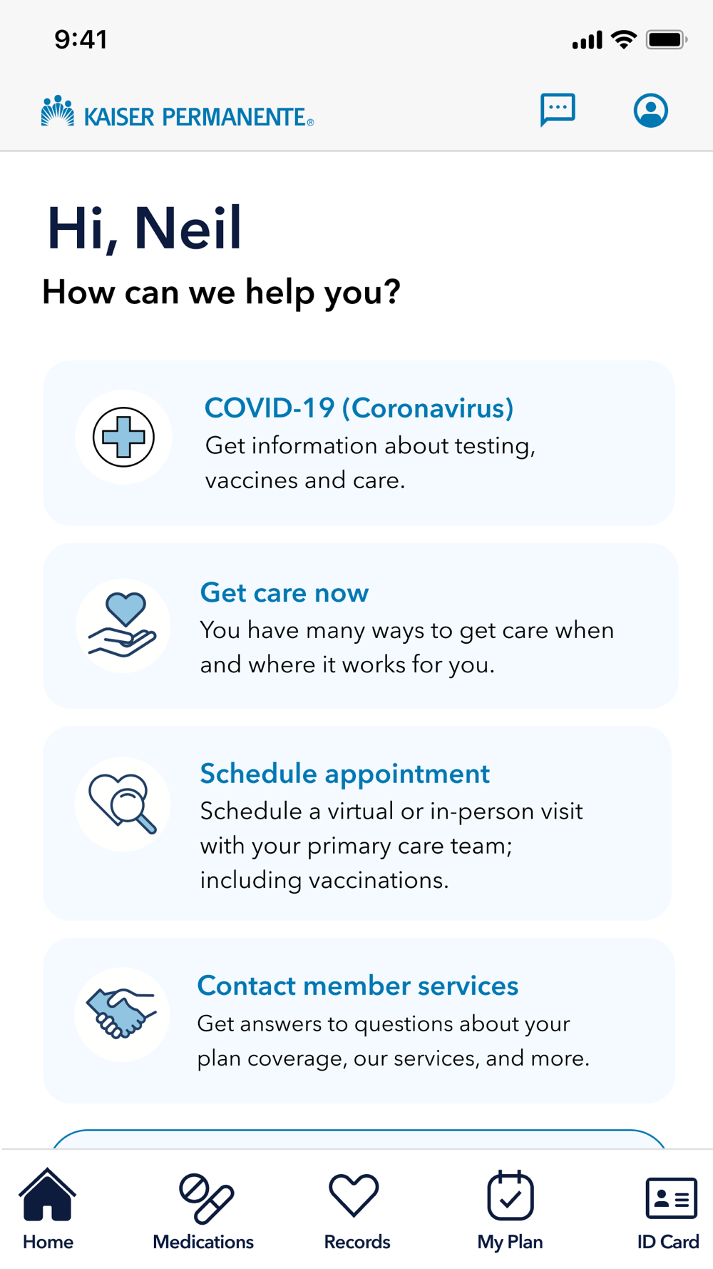 • Locations and wait times – find the nearest Kaiser Permanente medical facility, schedule a phone, video, or in-person visit, view upcoming and past visits, and see wait times for pharmacy and lab.