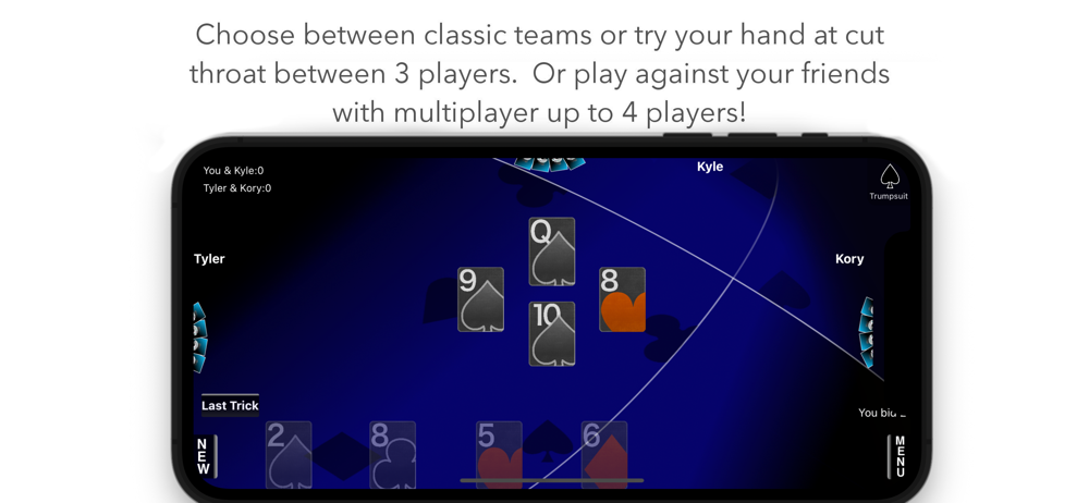 You can now play multiplayer through Game Center included. This allows for 2 to 4 players to play together in any version of Pitch! You can also use the built in voice chat feature to talk amongst your friends!