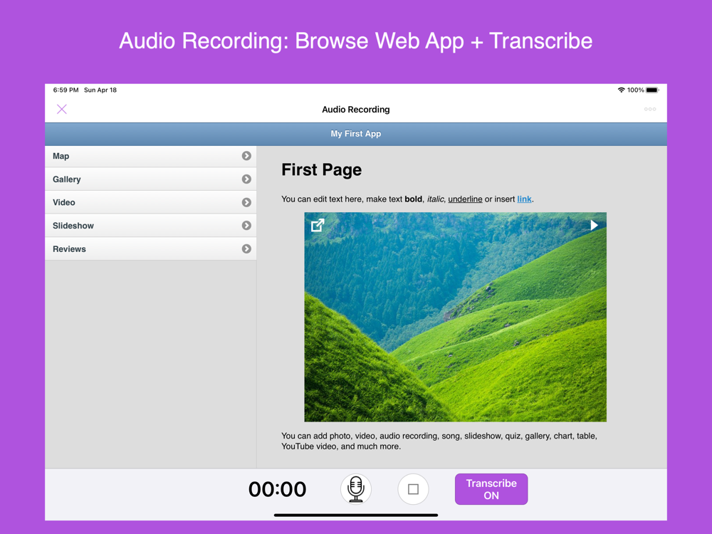 TouchAppCreator enables everyone to create touch-optimized, and content-centric mobile web apps for both iPhone and iPad in a few minutes on the go. No sign up is required. You can edit your app ONCE and generated app supports both iPhone and iPad automatically.