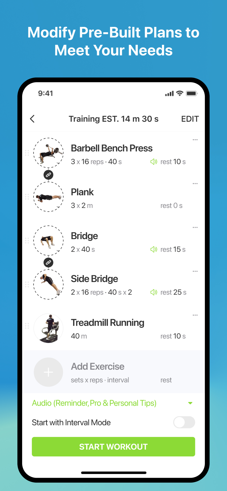 • Access 1400+ exercises, including those for barbells, dumbbells, kettlebells, and cardio machines.
