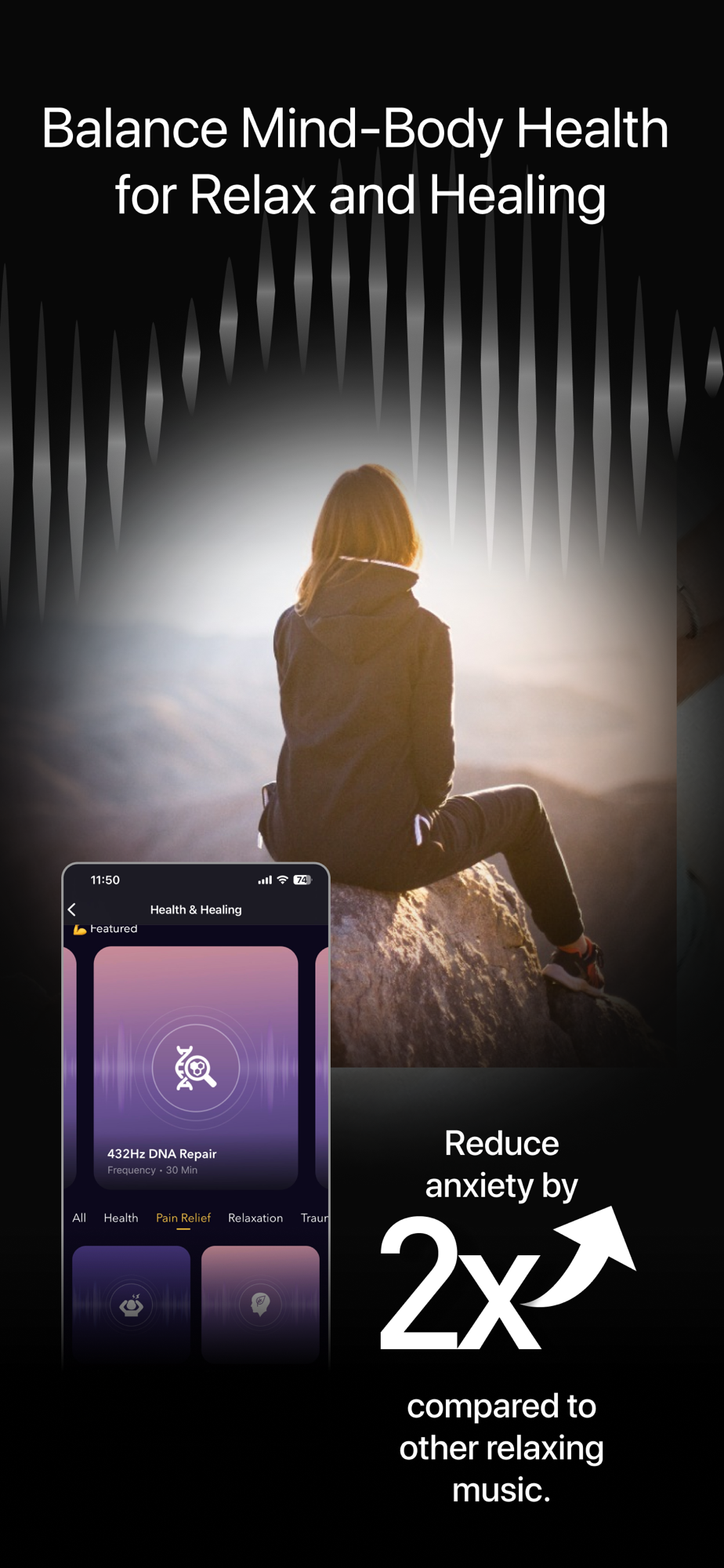 • Reduce tension/anxiety by 2x compared to other relaxing music.