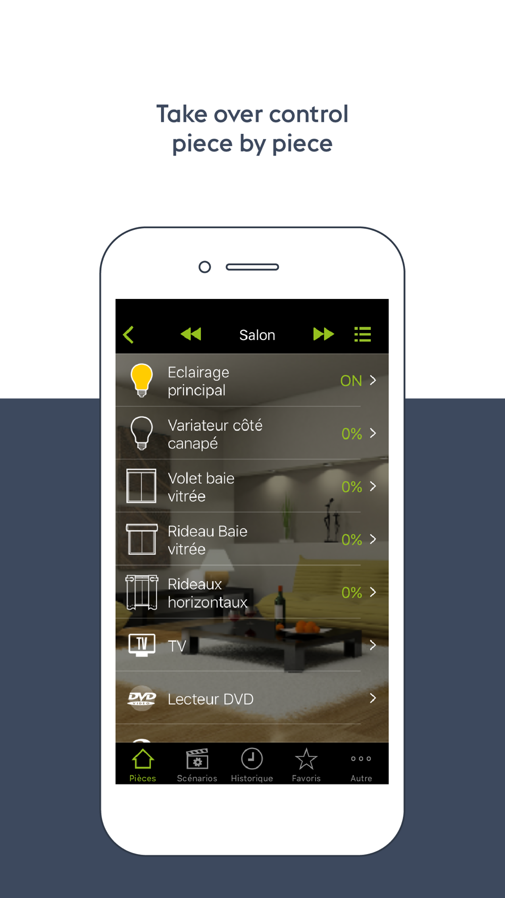Television, Home Cinema, audio-video amplifier, video projector, video doorman, IP camera, alarm, heating, lighting... the application allows you to visualize, control your system and receive alerts wherever you are. 100% scalable, you can install new connected devices and control them from your application.