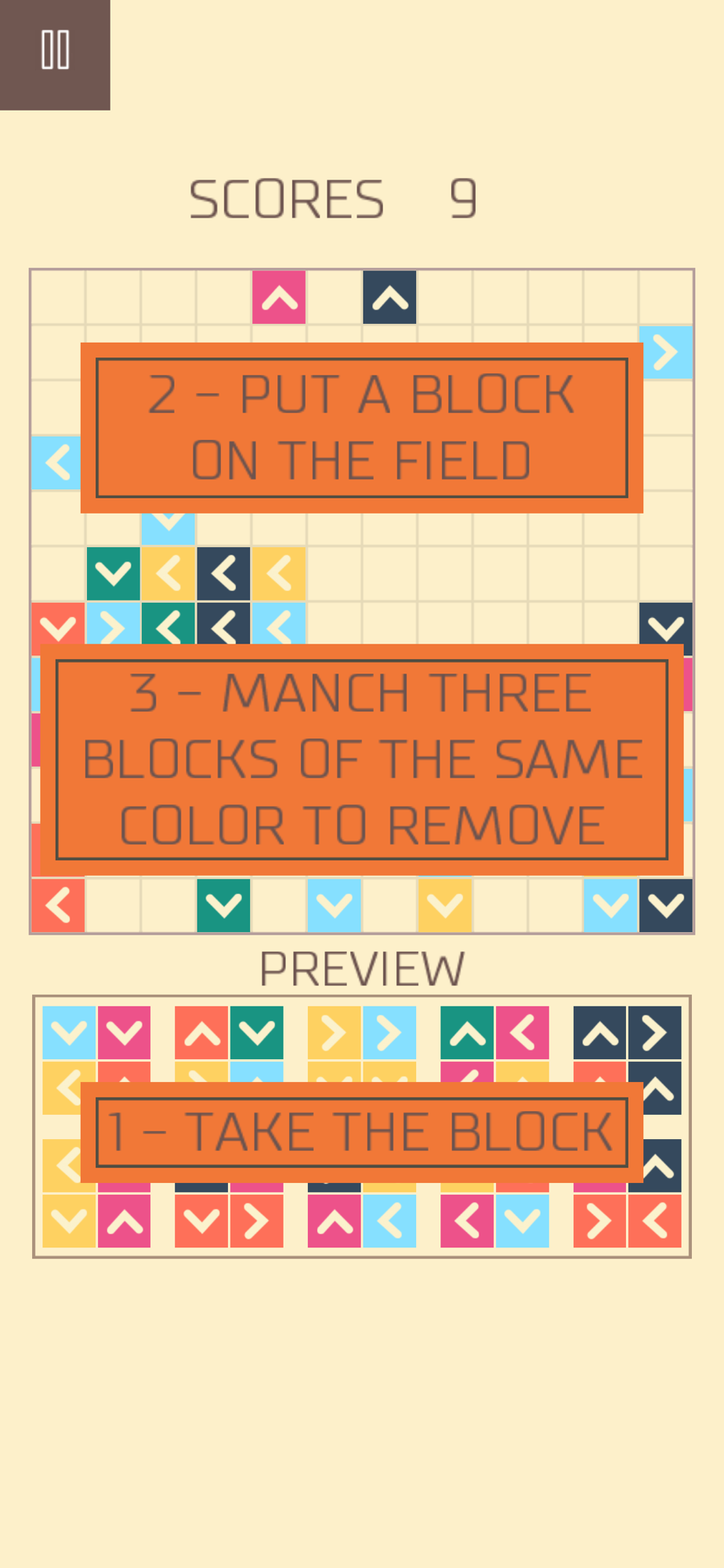 Icrawl is an original moving blocks puzzle. Each block consists of four parts. Each part has its own color and direction. Placed on the field the block falls into parts. They move in their directions until reaching an obstacle or a border. Match three or more block parts of the same color to remove them.