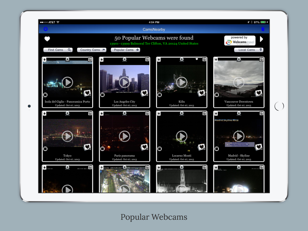 To display popular webcams, click on the Popular Cams button. To revert to the webcams for your current address at any time click the Refresh Cams button.