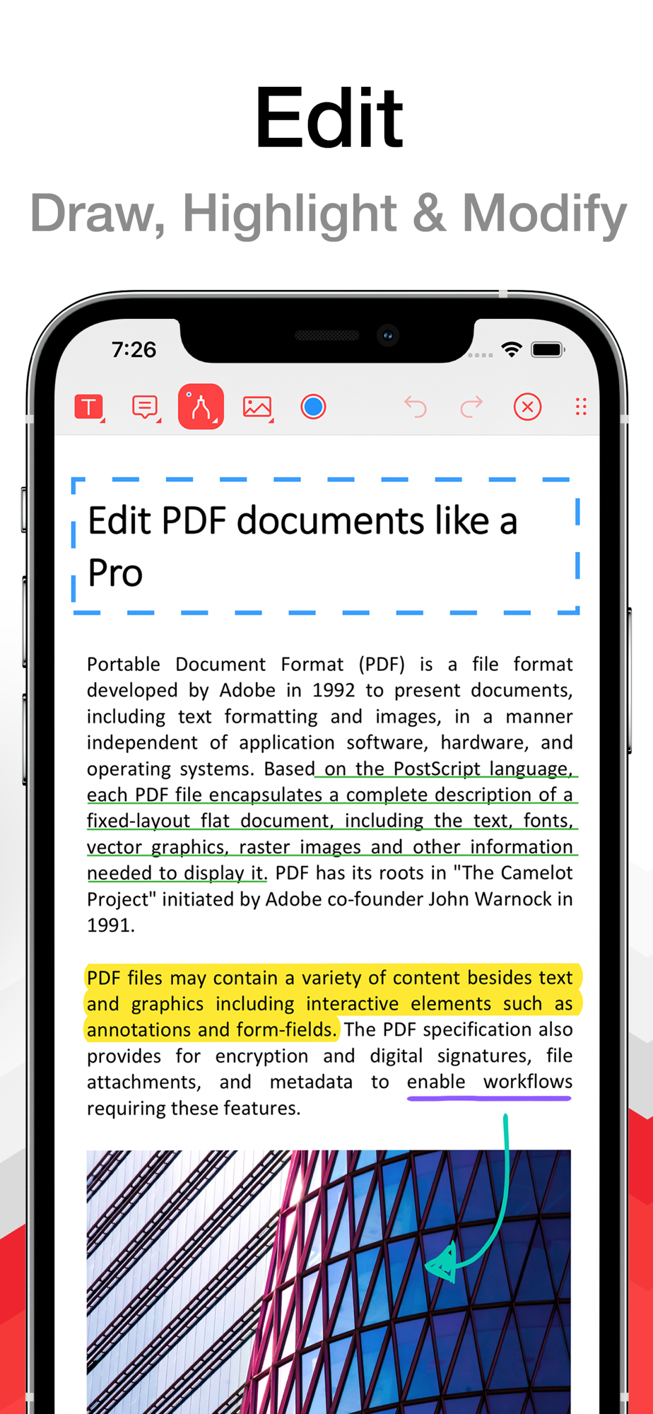 PDF Pro lets you read, edit and annotate your PDF documents directly on your iPhone and iPad. Highlight text, take notes, embed shapes or draw with your finger. You can even embed voice recordings or photo annotations. Full-text-search your entire PDF library with just a single tap.