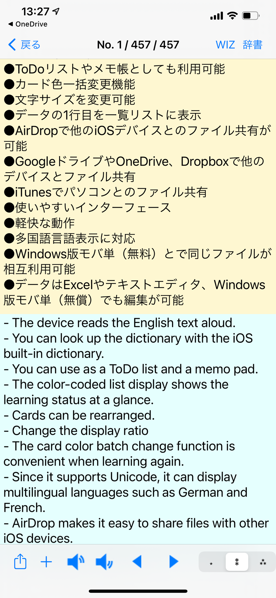 - For study : In card list screen, push “Action” -> “For study”, then change to “narrow down : Red and yellow cards”, “Display order : Random”, ”Hide Bottom”.