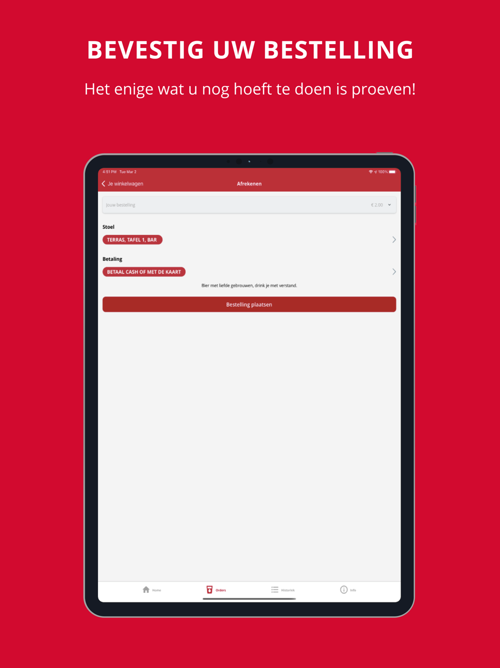 - Plaats uw bestelling via de applicatie