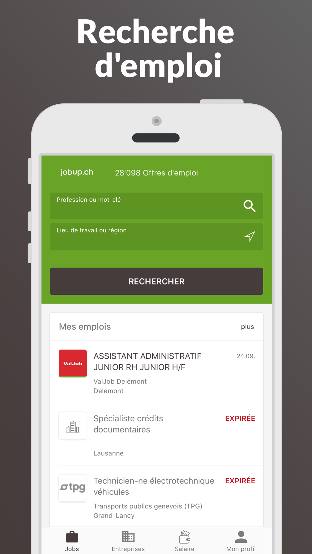 1 – ACCÉDEZ GRATUITEMENT À TOUS LES JOBS de Suisse romande depuis une seule application. jobup.ch, plateforme n°1 de l’emploi en Suisse romande, vous propose le plus grand nombre d’offres d’emploi ainsi qu’un large choix d’entreprises.