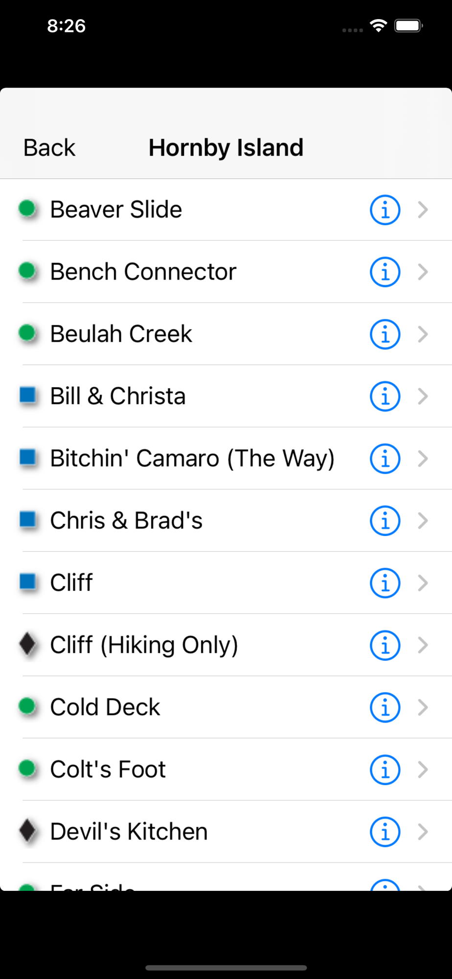 Includes over 40 named trails with descriptions (tap the blue arrow in the "Trail Info" list).
