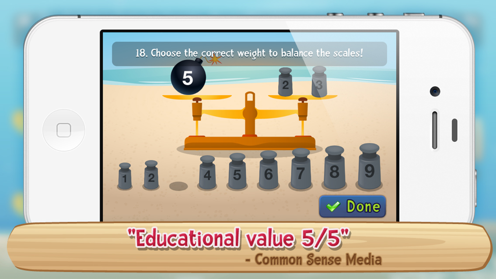 Aimed at introducing maths to your child as an enjoyable and rewarding activity, this app creatively demonstrates the idea of numbers being the indicators of order, time, weight and quantity, enhancing their natural urge to find order in the world of numbers and shapes.