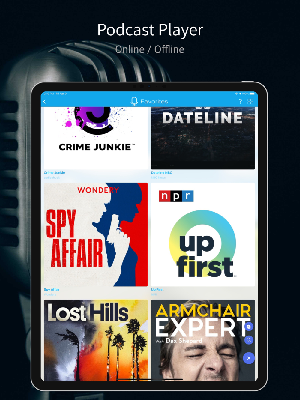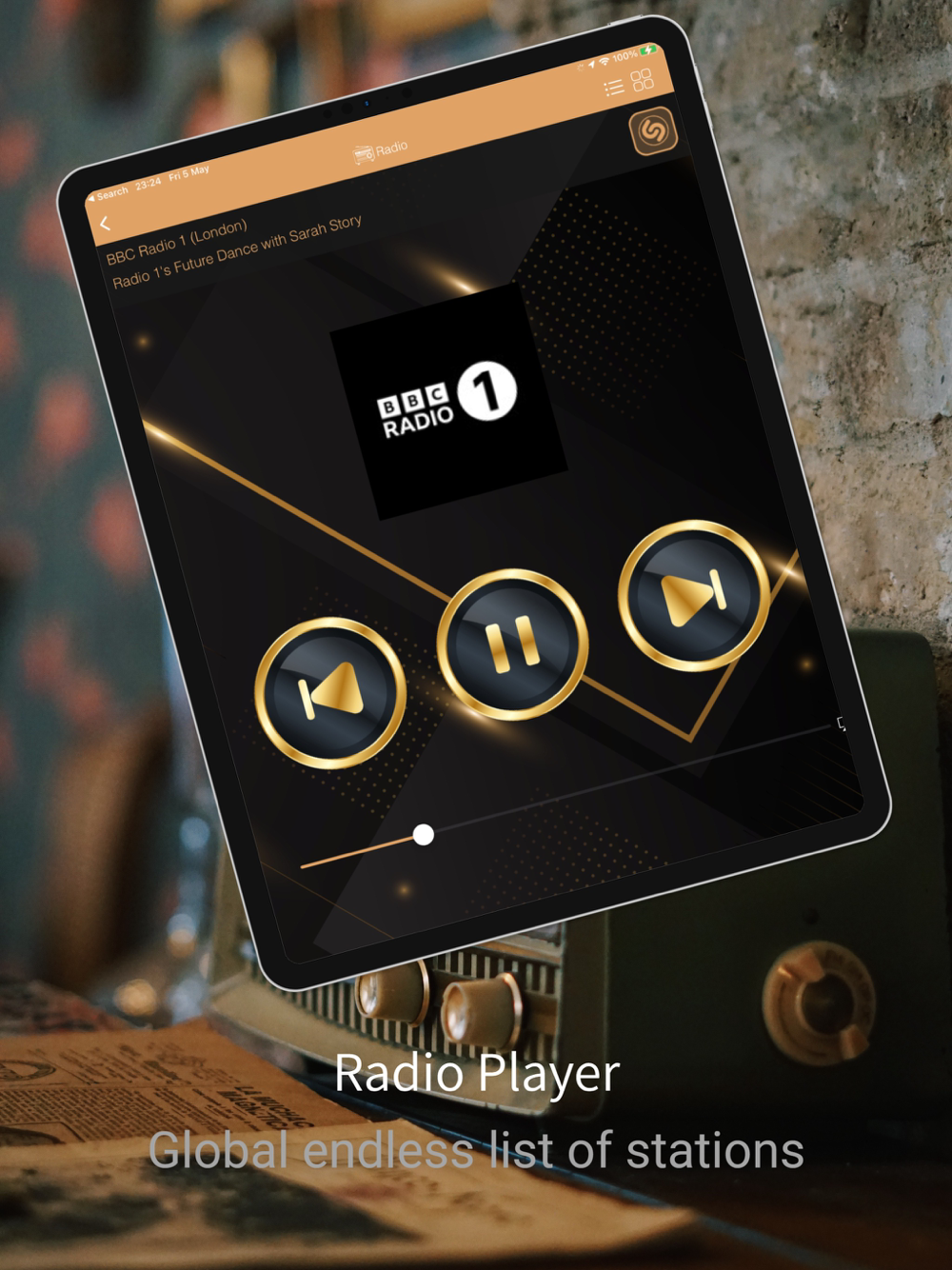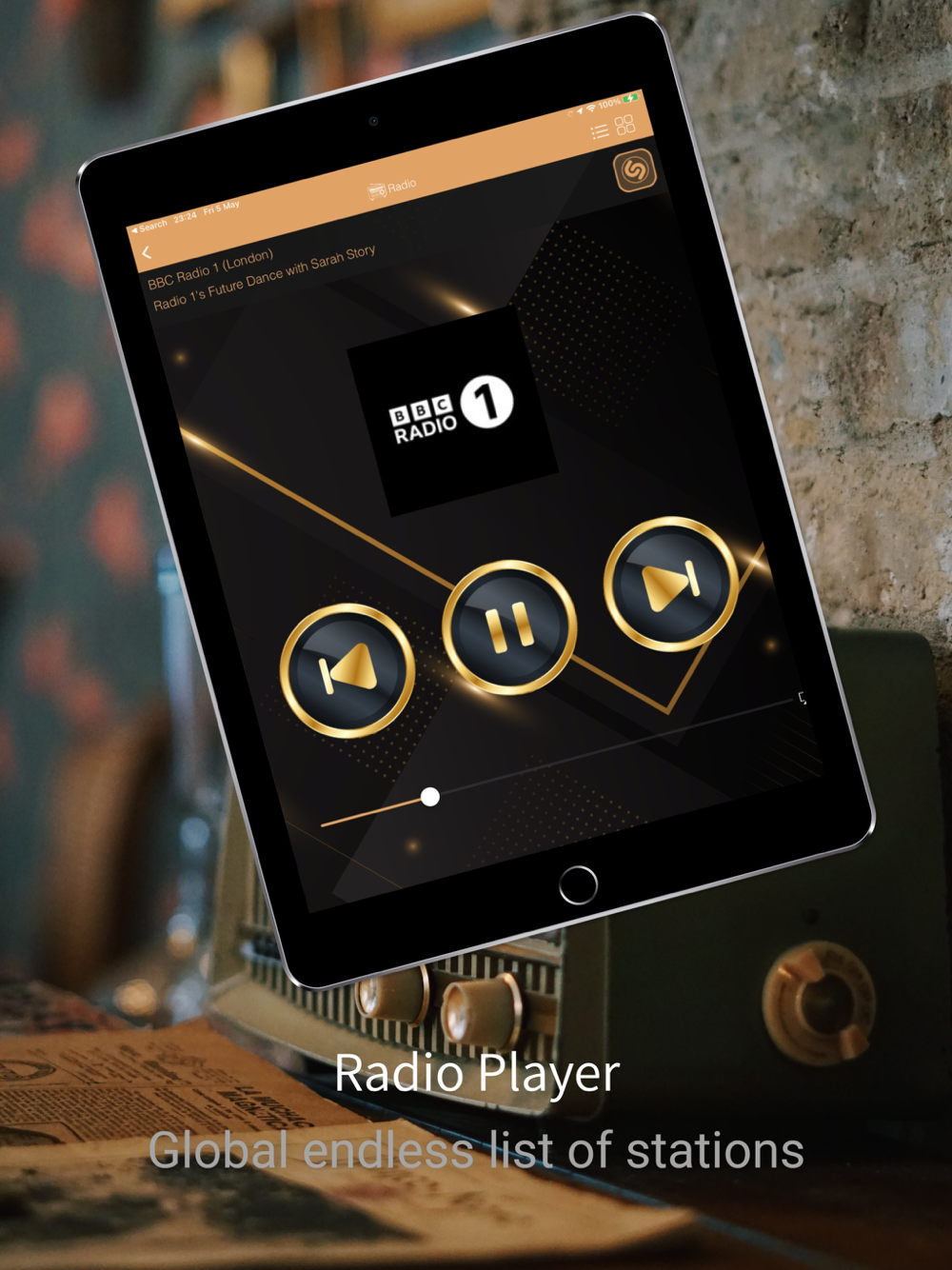 - Radio player with endless list of radio stations and podcasts to choose from.