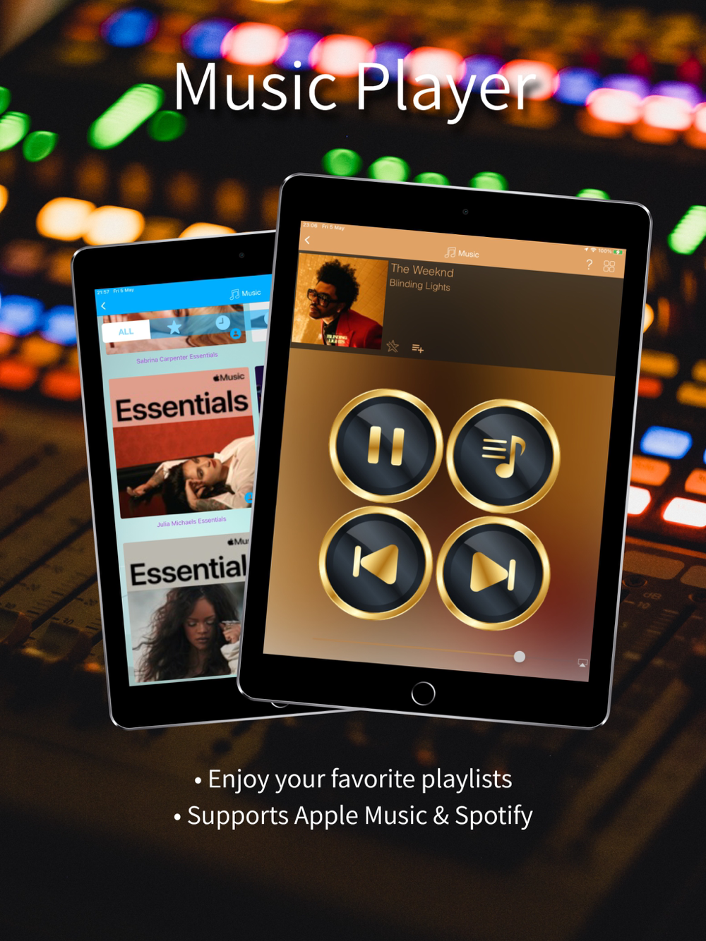 - Big buttoned music player with Apple Music and Spotify built-in integration.