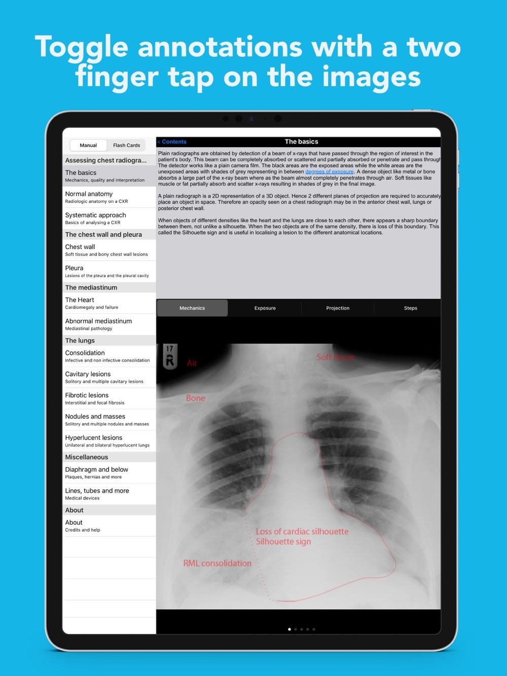 iCXR is a detailed chest radiograph pocket reference and manual for the iPhone and iPad.
