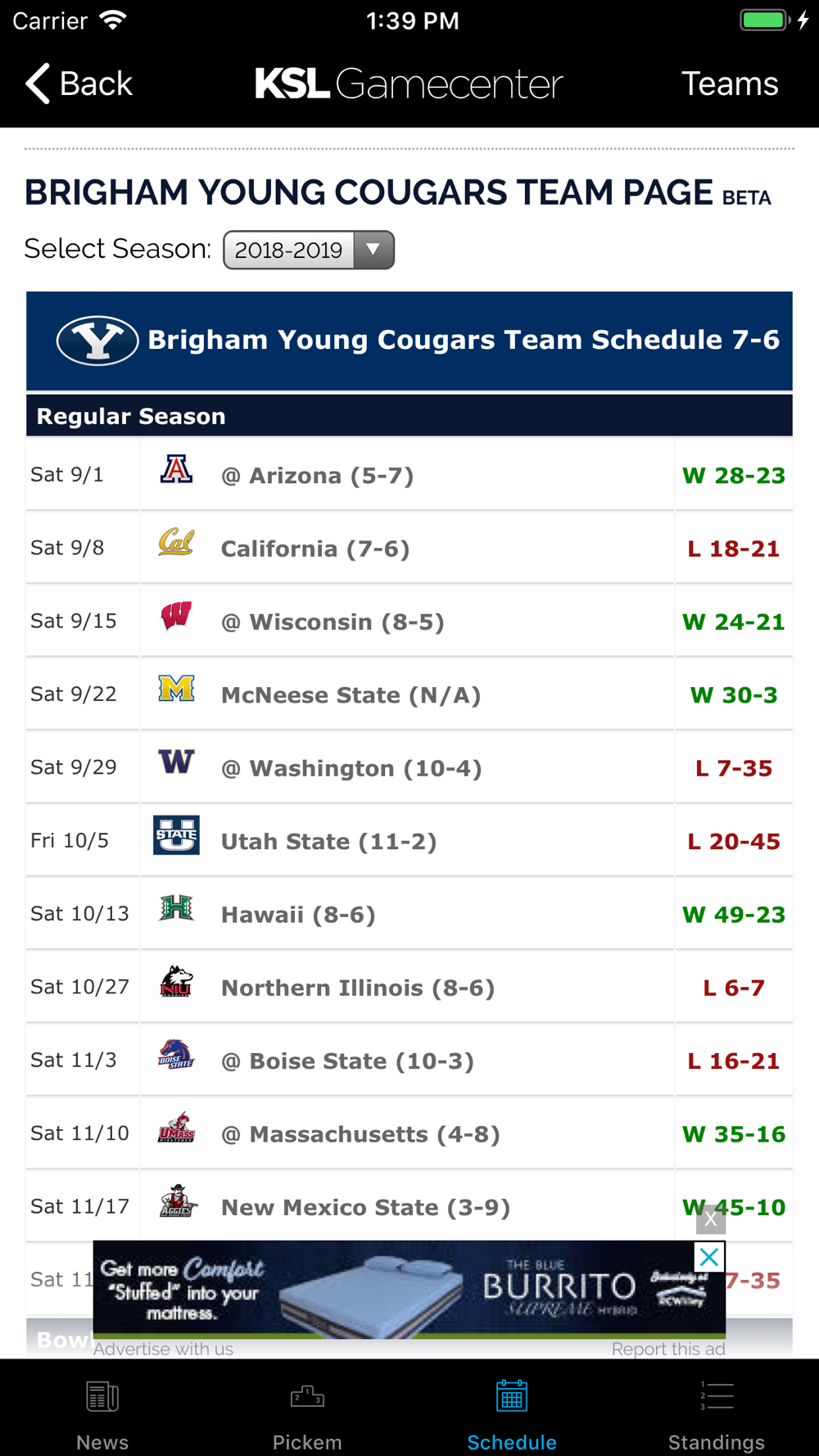 KSL GameCenter is your mobile lifeline for all Utah sports coverage. BYU, Utah, Utah State, RSL and Utah Jazz fans, we have you covered! View live game statistics, current division/conference standings, schedules, and the latest news for your favorite teams. For college sports fans, easily switch from football to basketball to track your teams on the gridiron and the hardcourt.