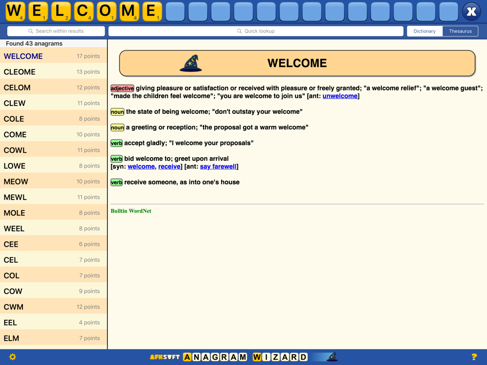 You can also quickly find out whether your words are valid and look up their definitions. Improve your skill by using it as a training tool.