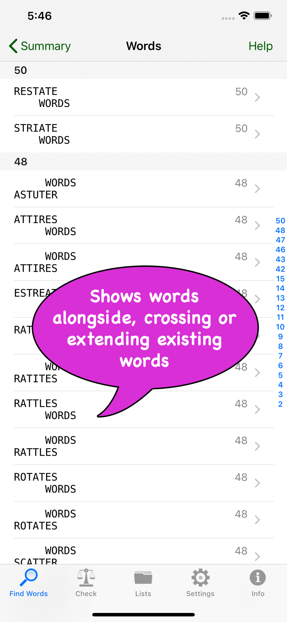 Word Finder is a helper app for popular word games. It is not affiliated with the makers of these games.